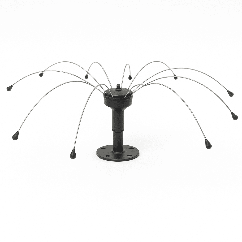 BirdShield Longlegs is a bird deterrent designed to keep nuisance birds away from your property. The system features a central base with flexible, rotating rods that extend outward like an umbrella. These rods move freely with the wind, creating a dynamic barrier that discourages birds from landing. Its unique design makes birds feel uncomfortable, encouraging them to find alternative spots without causing any harm.